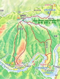 그외 등산 지도 & 교통/강원도33 [횡성] 어답산 지도.교통...횡성호 어답산은 박혁거세가 진한의 태기왕을 쫓다 이 산에 들어왔다 하여 어답산(어탑산)이라 불리게 되었다고 한다 또, 갑천(甲川)도 태기왕이 피묻은 갑옷을 씻었다 하여 붙여진 이름이라고 한다 높이는 789m 로 그다지 높지 않지만 산세는 병풍을 두른듯 하다 어답산 북쪽 기슭의 병지방리는 .. 2011. 7. 28. [춘천.홍천] 연엽산 녹두봉 대룡산 구절산 지도.교통...춘천지맥.영춘지맥 춘천시 남쪽 우측 동산면과 홍천군의 경계에 솟은 연엽산과 구절산은 춘천시와 인접해 있어 수도권 주말 산행지로 많이 찾는 곳이다. 산세가 연꽃잎과 비슷하다 하여 이름 붙여진 연엽산에는 강원대 연습림이 조성 되어 있어 마치 원시림에 들어선 것처럼 숲이 울창하다또 춘천시내와 가리산,공작산이 한눈에 들어오는 정상 전망도 장관이다그러나 연습림 관리초소에서 부터 입산을 통제하므로 타 등산로를 이용해야 한다 연엽산 남쪽에 솟은 구절산은 이름처럼 산세가 복잡한데 산의 동쪽은 험준한 반면 북쪽과 서쪽 산자락은 밋밋하다산 곳곳에 명소가 산재하는데 기암으로 이뤄진 자연석굴,겨울에도 더운 김이나는 샘이 있는 더운짐내고개 울창한 잣나무수림 등이다 연엽산과 구절산 북쪽에는 대룡산이 자리잡고 있다능선중 가장 높은 산이지만 산세가.. 2011. 7. 26. [홍천] 백우산 지도.교통...홍천강 발원지 용소계곡... ◈홍천군청 홈피안내 ▶http://www.great.go.kr/ 2011. 7. 6. [영월.정선] 두위봉 목우산 단풍산 매봉산 민둥산 지도.교통...두위지맥.운탄고도.새비재 영월군의 하동면 중동면,상동읍 세 읍면의 경계에 목우산이 서 있다 정상 가까운 주능선에는 진달래군락이 펼쳐지고 기암이 많아 산세가 아름답다 목우산 북동쪽에는 단풍산과 매봉산이 솟아 있다 단풍산은 가을 풍광이 유난히 아름다우며 매봉산은 울창한 노송숲과 기암절벽의 조화가 빼어 난 산이다 ※볼거리 수주면 계곡축제: 강과 산으로 둘러싸인 수주면에서 매년 8월초 열리는 여름축제로 농촌체험,가재잡기,꺽지낚시 등을 체험할 수 있고 계곡음악회와 같은 문화행사도 열린다 ◈교통: 목우산 청량리->태백선열차->영월->상동,태백행 시외버스->녹전 동서울T/R->시외버스(07:00~22:00/13회)->영월 ↘ 시외버스(06:10~18:30/11회)->녹전 영월->시내버스(06:10~19:10/12회)->녹전 ↘ 시내버스(07.. 2011. 7. 2. [홍천] 금학산 지도.교통... ◈ 홍천군청 홈피안내 ☜ 2011. 6. 6. [삼척] 육백산 응봉산 사금산 지도.교통...이끼폭포. 육백지맥 응봉산은 삼척시 도계읍 신리와 노곡면의 상마읍리의 경계를 이루는 산으로 육백산 정상은 조 600섬을 뿌릴 수 있을 정도로 넓은 고위평탄면이 생성되어 있어 붙여진 이름이다 응봉,육백산은 1000m 이상의 고도로 사람들의 발길이 흔치않고 등산로도 정비되어 있지 않지만 두 산 모두 정상 아래까지 임도가 나 있어 이 길을 이용하면 쉽고 빠르게 오를 수 있다 응봉산 정상에는 군막사를 개조한 응봉산장이 있어 비를 피하거나 하룻밤 묵기에 좋으며 신리의 너와마을에 서 너와집과 민속유물을 볼수 있다 ◈ 교통: 응봉산/육백산 청량리역->기차(10:00, 14:00)->통리역->시외버스->신리 동서울T/N->시외버스(06:00~23:00)->태백->시내버스->신리 .. 2011. 6. 2. [제천] 구학산 주론산 삼봉산 시루봉 지도.교통...박달재.배론성지 치악산맥의 큰 산줄기가 남으로 뻗으며 두줄기로 갈라지는데 서쪽으로는 백운산으로 이어지고 남으로는 구학산과 주론산을 일으킨 다음 박달재를 지나 사랑산에서 그 맥을 다 한다 원주시 남쪽을 막고 선 백운산은 원주분지를 감싸고 강원도와 충북의 경계를 이룬다 표고가 높아 전망.. 2011. 4. 11. [원주.제천] 감악산 천삼산 석기암봉 지도.교통...영월(춘)지맥 강원도 원주시와 충북 제천시의 경계를 지으며 뻗은 능선 위에 감악산(954m)과 석기암봉이 솟아 있다 영춘지맥중의 영월지맥 마루금이 지나며산 전체가 바위로 되어있는 산으로 주위에 용두산,천삼산,석기암봉 등이 자리잡고 있다 산행시간이 짧고 경사도 완만한 편이라 초보산행,가족산행에 알맞으며 산 동쪽 기슭에는 백련사가 있고 절 뒤쪽으로 동자바위(일명 감악바위)와 선녀바위가 있다 동자바위는 월출봉, 선녀바위는 일출봉으로도 불리는 이 산의 명물이다 산 서쪽으로는 서마니강이 흐르고 있어 여름관광지로 인기가 있다 ※ 위치:강원도 원주시 신림면, 충북 제천시 봉양읍 ◈교통: 감악산/천삼산/석기암봉 동서울T/N->원주->주천,운학리행버스->재사동 청량리역-↗ ↘시내버스->창골 ↘시내버스->신림->시내버스->창골 동서울T.. 2011. 4. 3. [양구.화천] 사명산 문바위봉 지도.교통...추곡약수.도솔지맥.파로호 강원도 화천군 간동면과 양구군 양구읍의 경계에 도솔지맥이 지나는 사명산이 산줄기를 드리우고 있다 사명산은 육산으로 능선 북쪽으로는 파로호가 남쪽으로는 소양호가 자리잡고 있다산 남쪽에서 서쪽으로 46번 국도가 지나고 있어 드라이브를 겸한 산행을 즐길수 있는 산이다 봄이면 진달래가 흐드러지고 가을 단풍도 아름다우며 설경또한 수려해서 사계절 변화있는 자연을 만끽할수 있다 정상에 오르면 파로호와 소양호