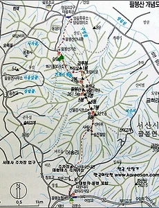 서태사1 [서산] 팔봉산(금강산) 지도.교통... 서산시 바닷가에 솟은 팔봉산은 362m의 낮은 산이지만 태안반도의 최고봉이다이름처럼 봉우리 8개가 연이어 솟아있고 규모는 작지만 기암괴석과 암릉(巖陵)이 어우러져 강원도 홍천강가에 있는 팔봉산과 비슷하다팔봉산 산행의 정점은 1봉서 3봉까지의 암릉 구간인데 곳곳에 로프와 계단이 설치되어 있으며비좁은 바위틈을 빠져나가야 하는 동굴등이 있어 산행의 재미를 더하며 정상(3봉)에서의 조망은 막힘이 없다그림같은 가로림만의 해안과 능선 끝의 8봉이 내려다 보이고 멀리 가야산과 덕숭산,금북정맥 줄기와 서산시가 조망된다 ◈교통: 팔봉산 남부터미널->버스(06:30~19:10/37회) ->서산->버스(06:30~19:30/16회)->양길리 강남터미널->버스(06:~21:50/20분간격).. 2011. 11. 8. 이전 1 다음